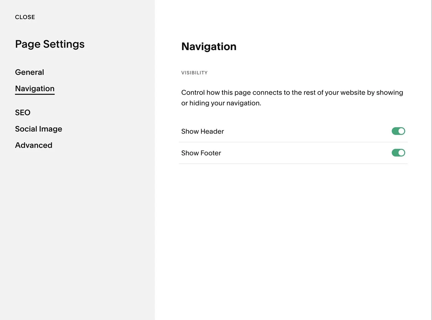 Toggle off the header and footer. This way, your visitors see only the links and content you’ve chosen.