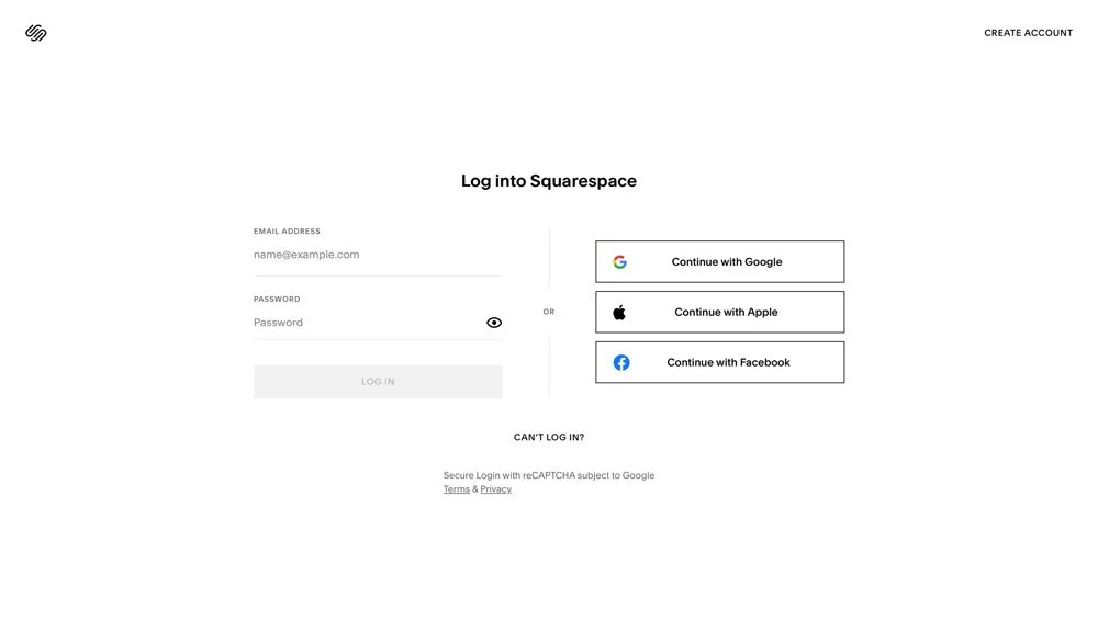 Each of these login options routes you into the same Squarespace account.